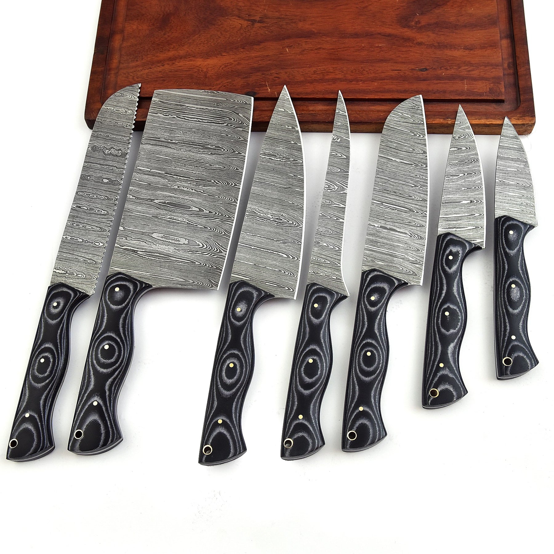 01 x (Chef Knife, Cleaver Knife, Slicing Knife, Boning Knife, Utility Knife, Paring Knife, Santoku Knife and Premium Leather Roll/Pouch)